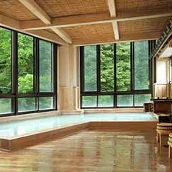 当館では裏山の噴気口より湧き出す源泉をそのまま浴槽に注いでいる、100%掛け流しの温泉。