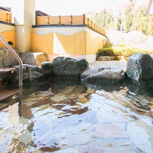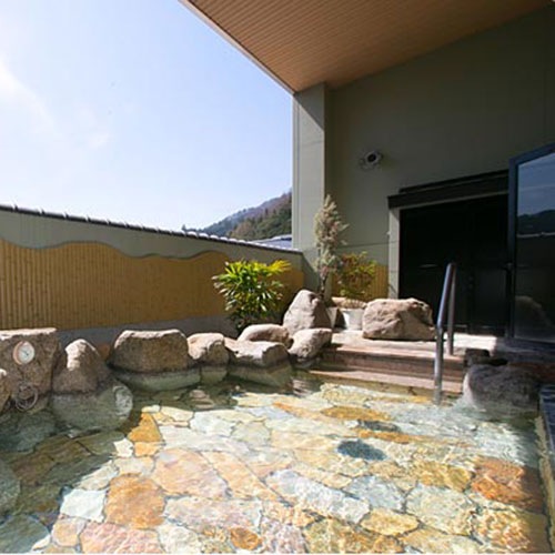 露天風呂付の家族風呂。昼神温泉のお湯は美人の湯と評判です。