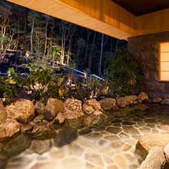 自然の恵みに囲まれた天然温泉も、夜通しご利用いただけます。