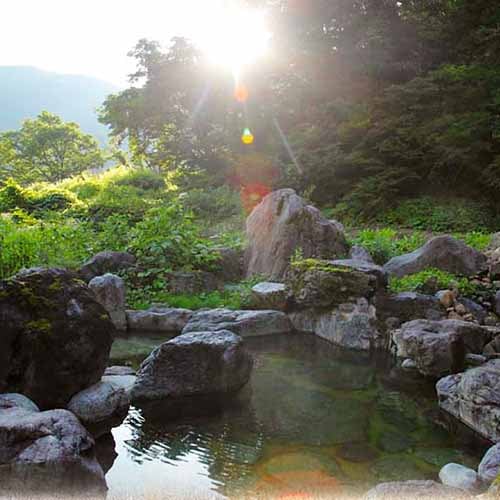 担当者のつぶやき「ここがオススメ♪」開放的な露天風呂は正に秘湯の混浴温泉。緑に囲まれた大自然の温泉で、