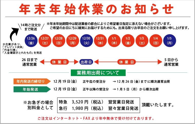 ※年末年始休業中の発送はお休みとなります。